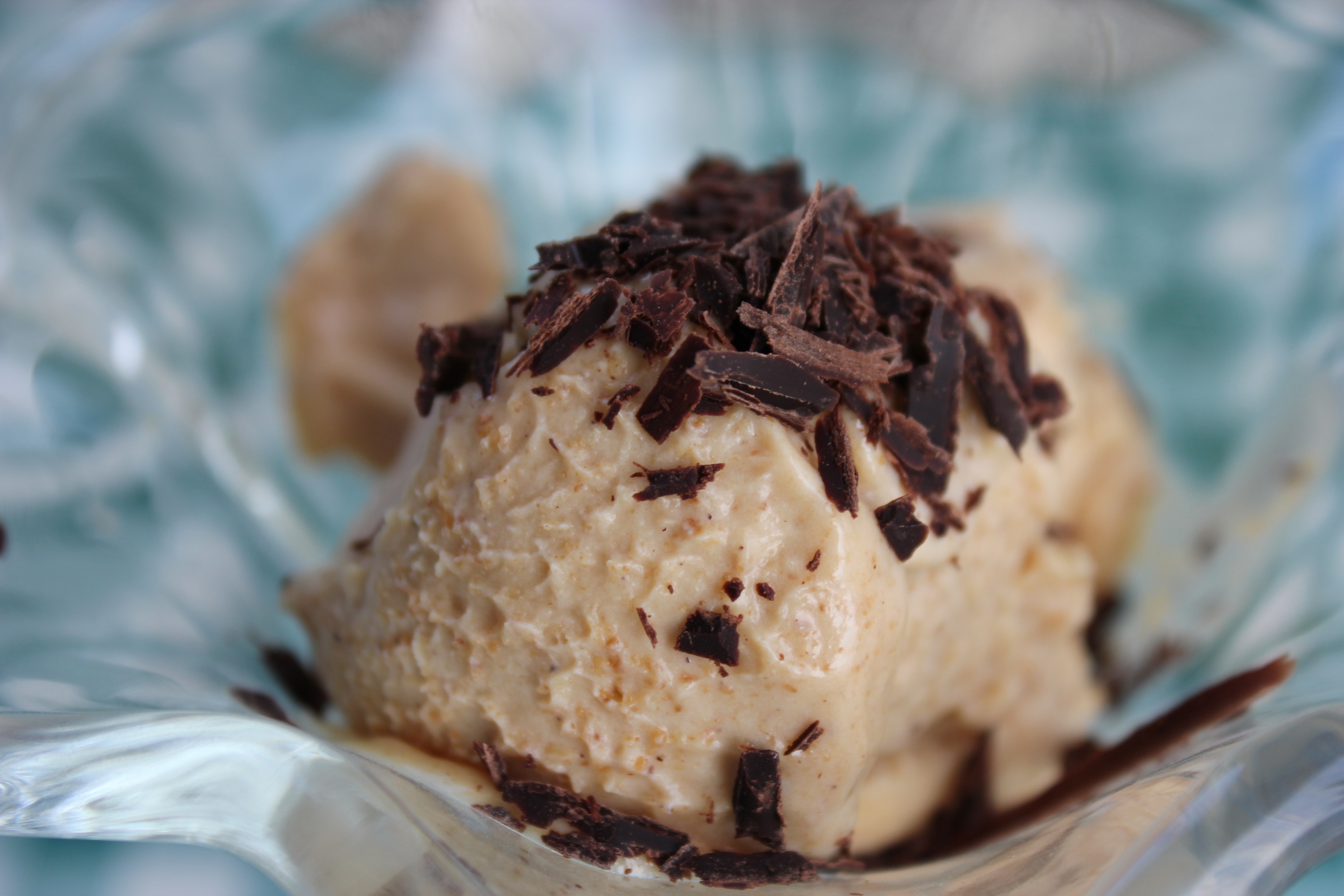 U vrhnje za šlag dodajte vanilin šećer i 1 veliku žlicu maslaca od lješnjaka. Dodajte i malu žličicu kakaoa i umiješajte mikserom tako da dobijete čvrstu smjesu. Nakratko zamrznite, a prije posluživanja pospite čokoladnim mrvicama ili dodajte komadiće voća.